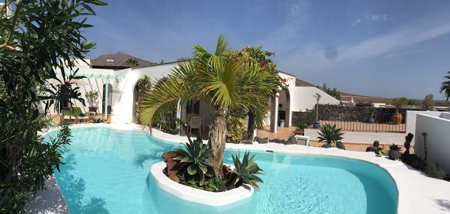 Wir bieten Ihnen in Lanzarote eine Ferienvilla mit Pool im César Manrique Stil, 2 Sonnenterassen mit hoher Privatsphäre, 3 Schlafzimmer, 2 Bäder mit Dusche. 1 Schlafzimmer davon hat einen separaten Eingang über die Terrasse mit Duschbad und eigenem SAT TV. Die Villa ist für eine Belegung bis maximal 5 Personen geeignet,besitzt ein geräumiges Wohnzimmer mit SAT-/Smart-TV (eigener Account für z.B. Netflix erforderlich), Radio mit CD-Player und USB-Anschluß, Blu-ray Player und offener Küche. Internetzugang über WLAN ist in allen Teilen des Hauses möglich.